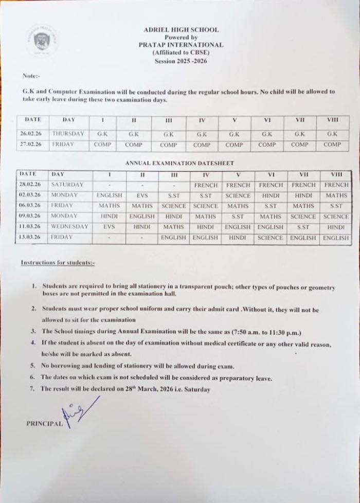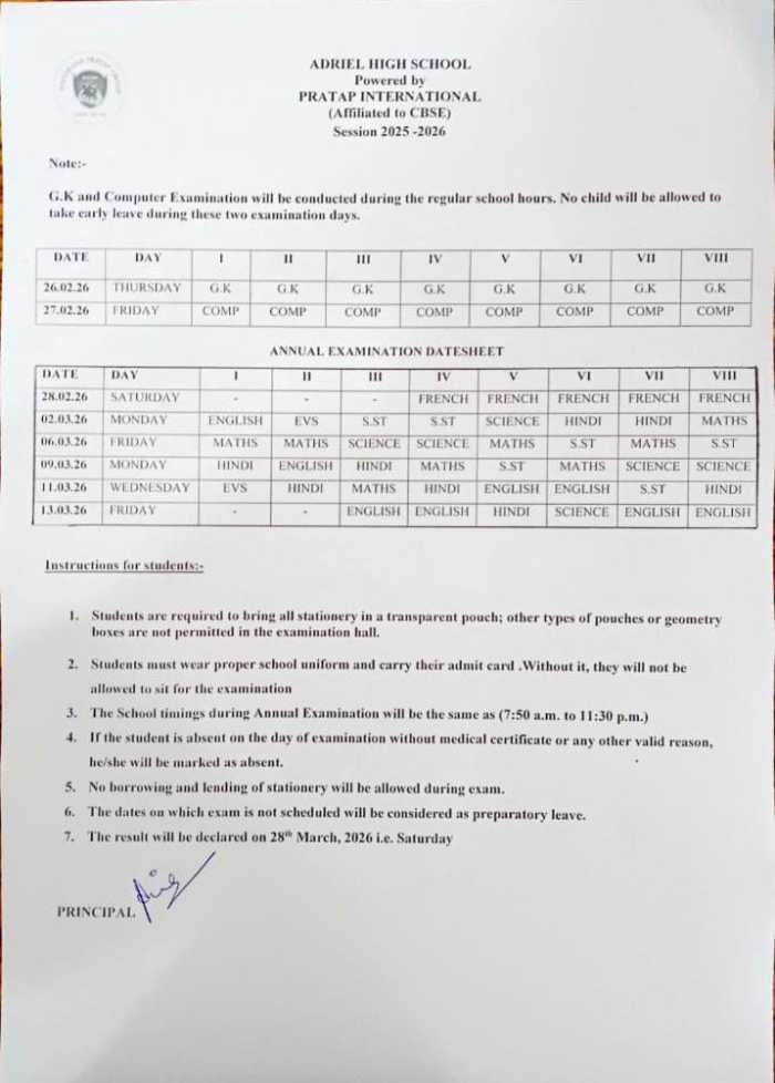Kindly go through the attached date sheet and ensure that your ward prepares accordingly.