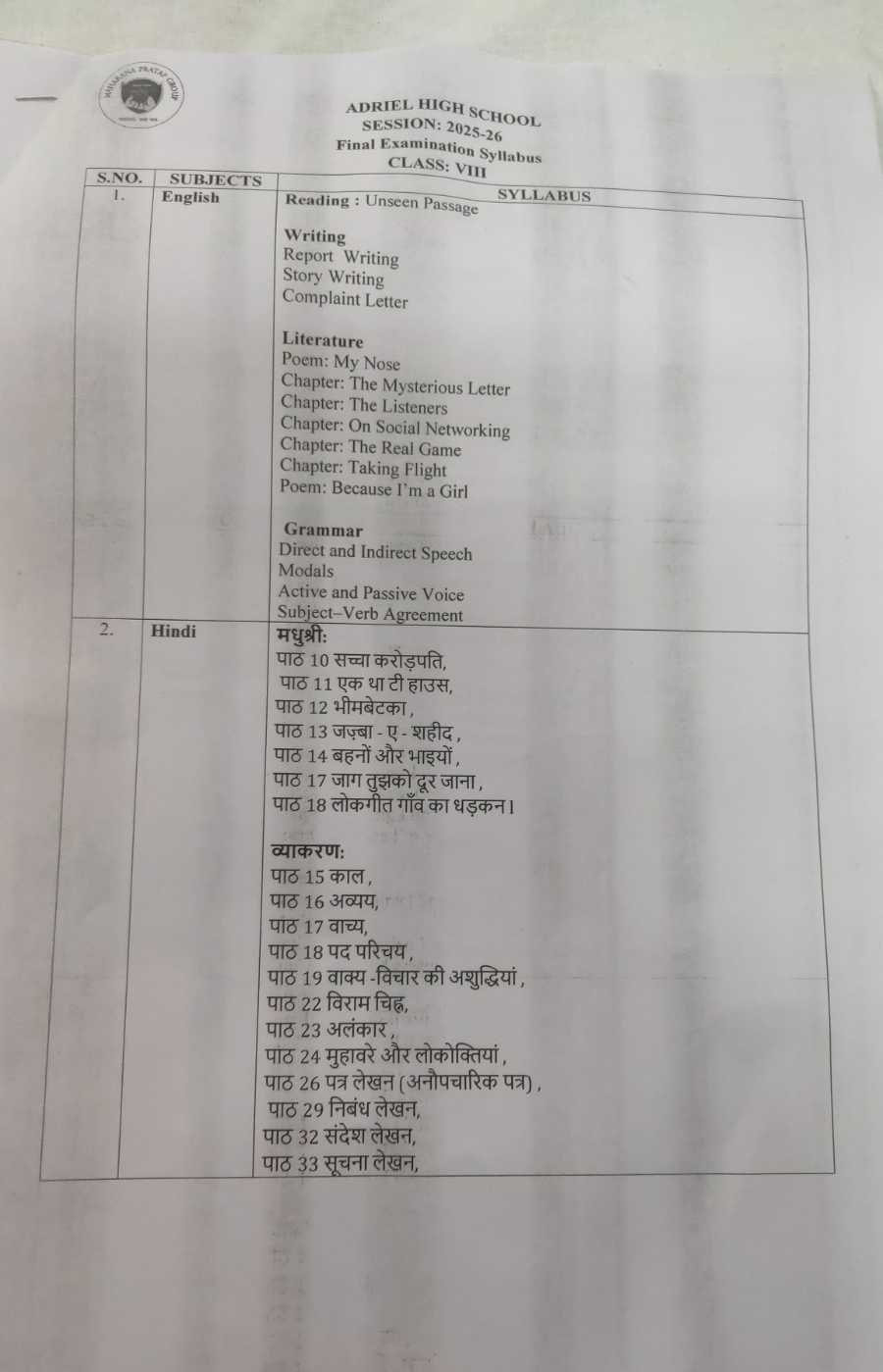 Kindly please download the Annual Syllabus and Annual exam datesheet. ALL THE BEST.